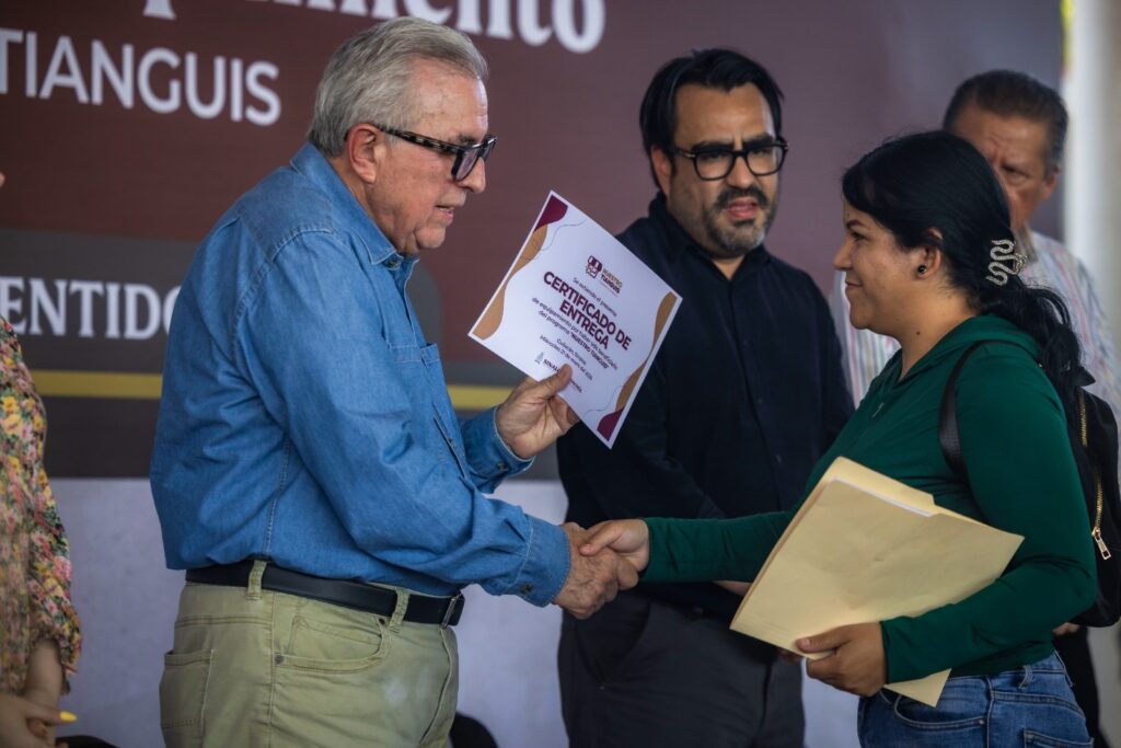 Gobernador Rocha Moya da certeza jurídica a familias de El Ranchito, al entregarles escrituras de sus viviendas