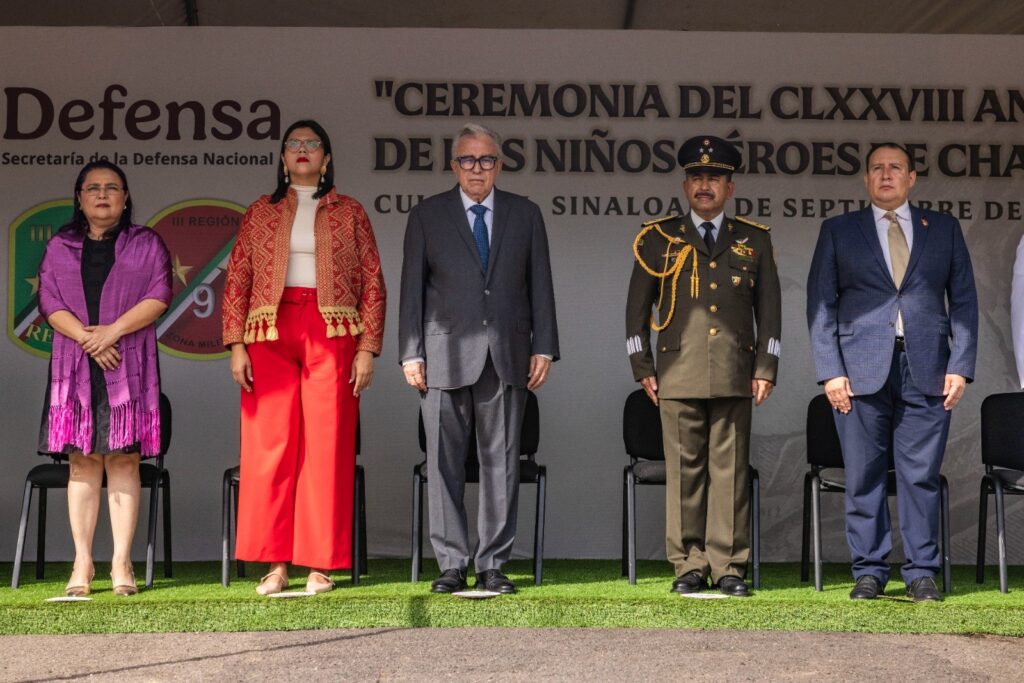 Culiacán Sinaloa a 13 de septiembre de 2025.- El gobernador Rubén Rocha Moya asistió este sábado a la ceremonia del 178 Aniversario de la Gesta Heroica de los Niños Héroes de Chapultepec como invitado de honor de la comandancia de la Novena Zona Militar. El mandatario estatal acompañó a los jefes castrenses y autoridades civiles  en