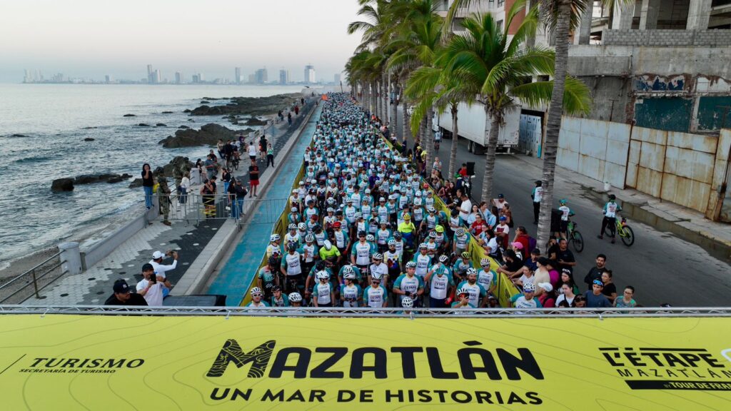 Mazatlán, Sinaloa 09 noviembre de 2025.- El gobernador Rubén Rocha Moya, acompañado de Mireya Sosa, secretaria de Turismo y Estrella Palacios alcaldesa de Mazatlán, encabezó la premiación de los primeros lugares de las rutas Larga y Corta de L´Étape Mazatlán by Tour de France, celebrada este domingo en el puerto.